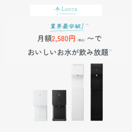 「できるだけ安く使いたい」「機能性も高い方が良い」そんな声に応えるのがLOCCA(ロッカ)です。月額2,580円という業界トップクラスの安さで、浄水サーバーが定額で使い放題。