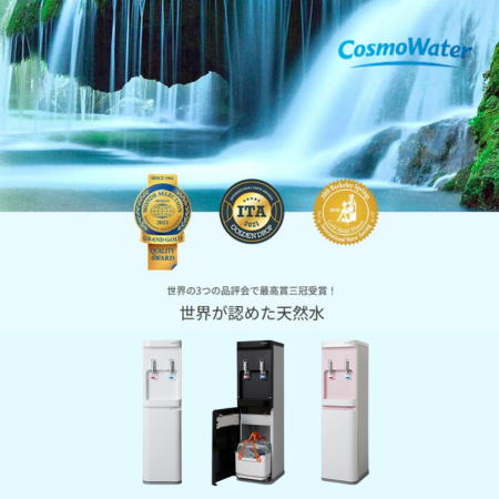 コスモウォーターは、鮮度にこだわった天然水を48時間以内に出荷する宅配型ウォーターサーバー。