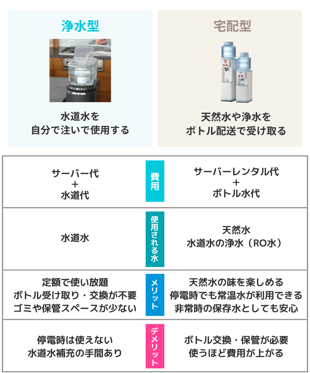 さらに、意外と知られていない「浄水型」と「宅配型(ボトル型)」の違いもわかりやすく解説。