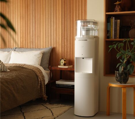 最大の特長は、ボトルを足元から交換できる設計。重たい水を持ち上げる必要がなく、女性や高齢者でもストレスなく扱えます。