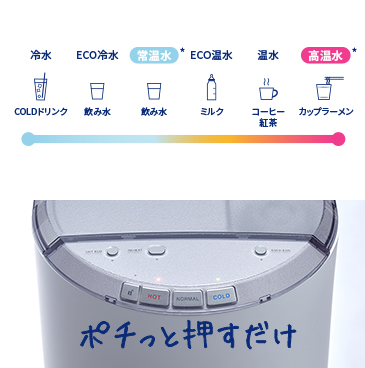 | 温度調整 | 冷水・温水・常温・高温水対応*(最大6段階) |