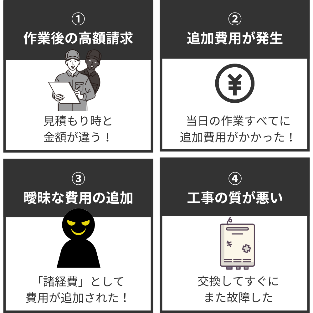 実際、業者選びを間違えてしまうと、次のようなトラブルが起きることも…