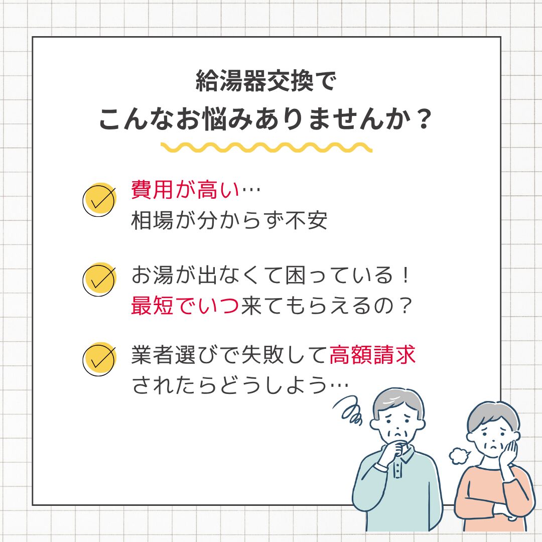 お湯が出なくて困っていたけど、迅速かつ低価格で本当に助かりました。