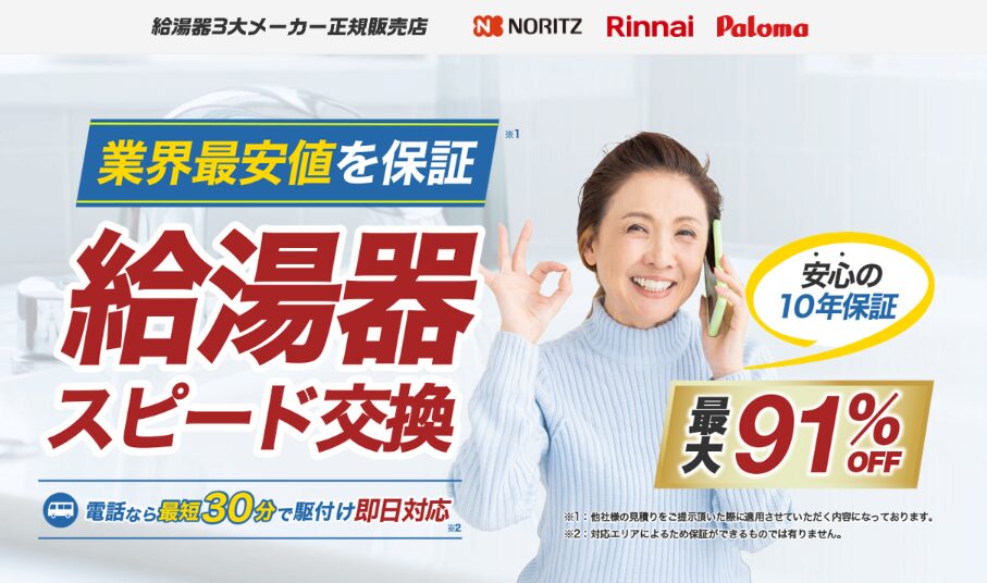 大企業として法令遵守の体制が整っており、適切な価格設定や丁寧なサービスが期待できる点も大きな魅力です。こうした背景から、初めての給湯器交換でも不安なく任せやすいのが特徴です。