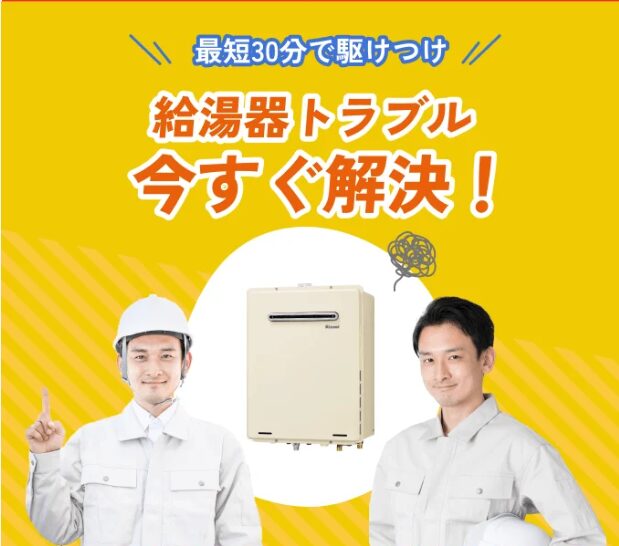 給湯器駆けつけ隊は最短30分で現場に駆つけ。寒い季節や急ぎの場面でもすぐに解決できます。