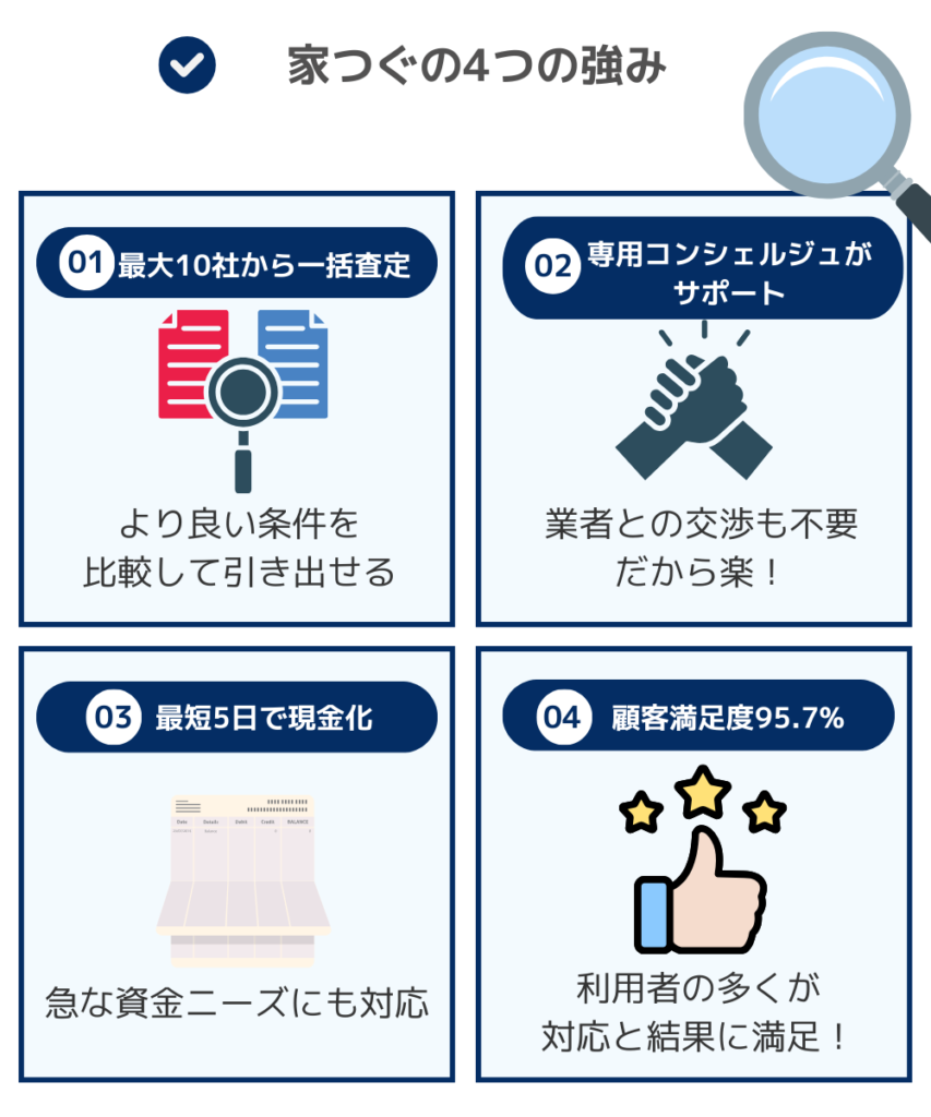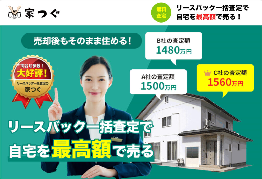 そんな方におすすめなのが、リースバック専門の一括査定サービスの「家つぐ」です。