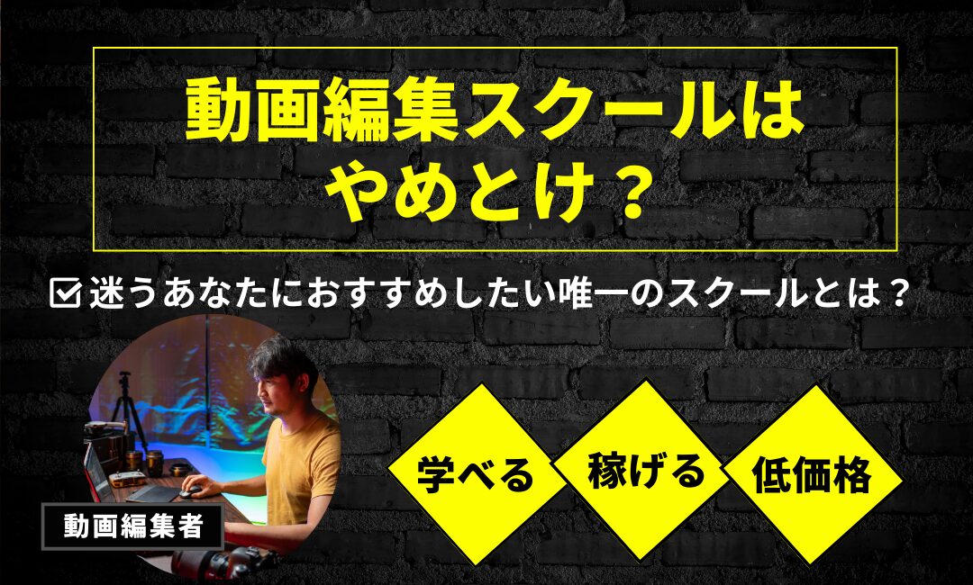動画編集に加えてWebデザインも学べて幅広く挑戦したい人には向いている。ただし教材は自己解決前提。