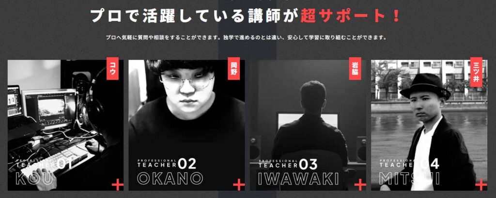 テレビCMを手がけた現役クリエイターのコウさんをはじめ、業界で活躍する講師陣が多数在籍。